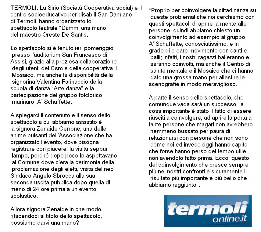 in scena con "Dammi Una Mano" di Oreste De Santis